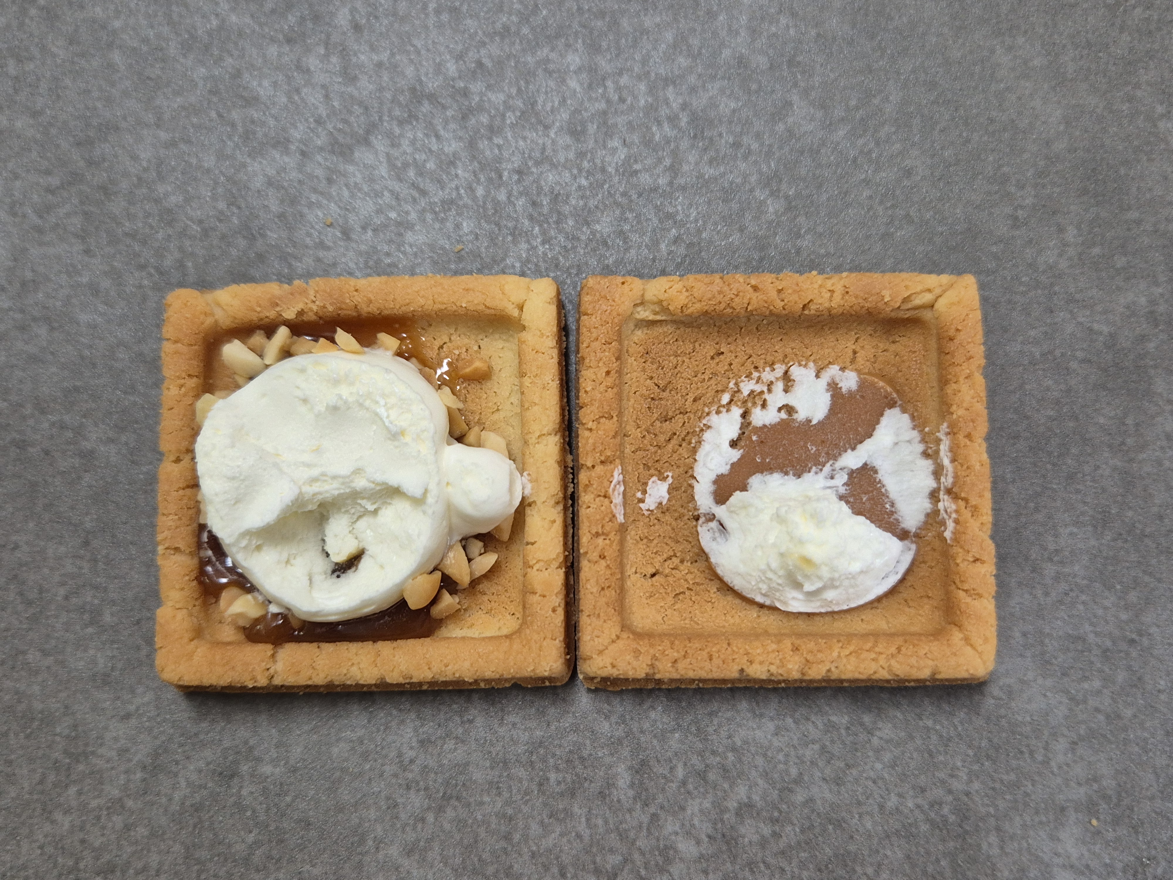약간의 바삭함을 가진 부드러운 버터쿠키에 캐러멜과 버터, 땅콩분태가 들어가 있어요